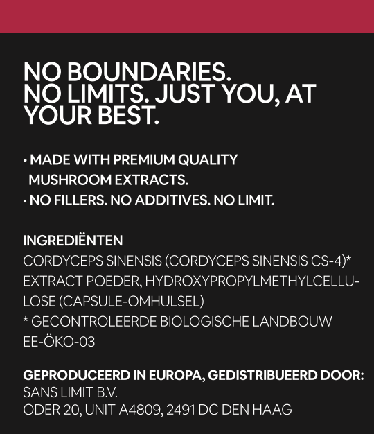 Kies voor Sans Limit Cordyceps en ervaar de natuurlijke kracht die je helpt om elke dag zonder grenzen te presteren!